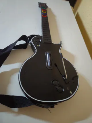 Controlador de guitarra estilo Gibson Les Paul para Xbox 360. - Diseño clásico en color negro. - Incluye correa. - Botones de colores en el mástil.