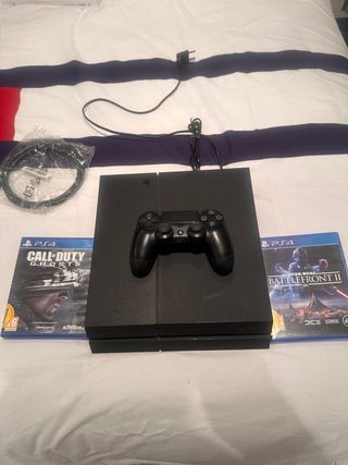 Consola PlayStation 4 con disco duro de 1TB. - Incluye mando DualShock 4. - Incluye los juegos Call of Duty: Ghosts y Star Wars Battlefront II. - Incluye cables de conexión. Cambiada pasta termica y no suena nada perfecta para jugar