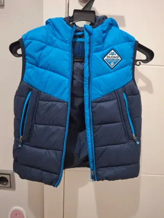 Chaleco NY. 7-8 años(128 cm). Nuevo. Muy buena calidad. Queda genial. Con el pedido siempre regalo algo!! Chaleco acolchado de dos tonos, azul marino y azul claro, con capucha. Ideal para entretiempo. - Cierre de cremallera frontal. - Dos bolsillos laterales con cremallera. - Detalle de logo en el pecho. - Talla 128 cm (7-8 años).