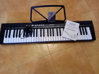 Teclado eléctrico OQAN de 61 teclas, ideal para iniciarse en la música. Incluye soporte para partituras y manual de usuario. - 61 teclas tipo enseñanza. - Incluye auriculares. - Soporte para partituras. - Manual de usuario. -Caja. -Tambien incluyo teclado controlador MIDI USB Keystation mini32 teclas de REGALO
