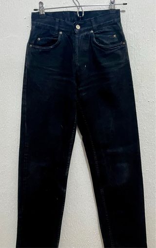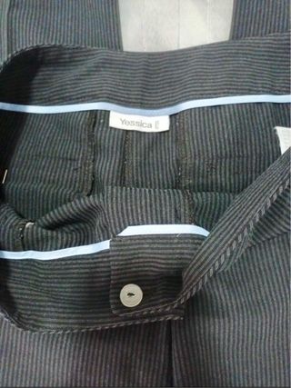 Pantalones de pinza de rayas en color negro. Diseño clásico y versátil. - Tejido con finas rayas verticales. - Cintura con trabillas para cinturón. - Bolsillos delanteros. - Cierre de cremallera y botón.