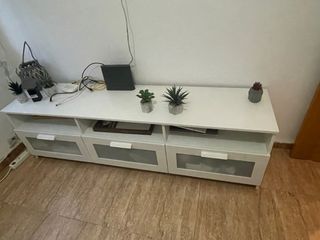 Se vende conjunto de dormitorio moderno en color blanco y lila, compuesto por una cómoda y dos mesillas de noche. Diseño actual y elegante, con gran capacidad de almacenamiento. Ideal para dormitorio juvenil o de matrimonio. Los muebles están en muy buen estado. 📏 Medidas cómoda (4 cajones y un armario): • Alto: 84 cm • Largo: 100 cm • Fondo: 43 cm 📏 Medidas mesillas: • Alto: 50 cm • Ancho: 48 cm • Fondo: 35 cm Perfecto para dar un toque moderno al dormitorio y mantener todo organizado.