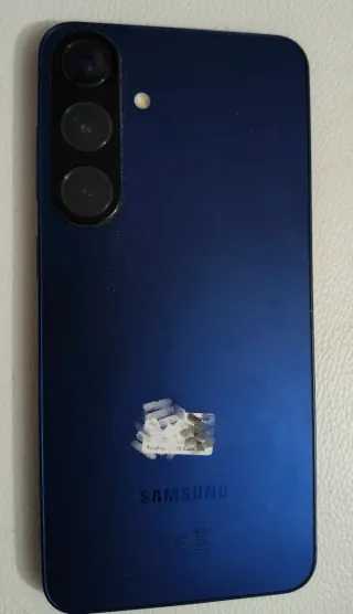 Teléfono móvil Samsung en color azul. Presenta algunos signos de uso, como se aprecia en las imágenes. - Cámara trasera dual. - Lector de huellas en la parte trasera.