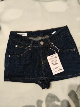Shorts vaqueros de tela denim con un diseño moderno y cómodo. Cintura alta y elástica. - Cinturón a juego incluido. - Bolsillos laterales. - Cintura alta.