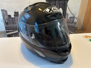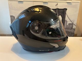 Casco de moto con acabado en carbono. Talla M-L. Diseño deportivo y aerodinámico. Muy poco uso. Pitlock incluido. No incluye intercomunicador.