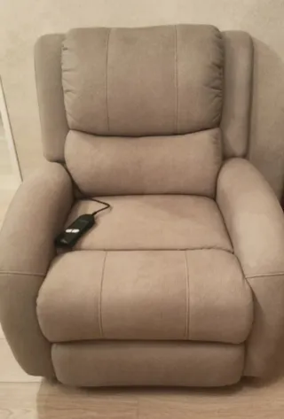 Sillón reclinable con mando a distancia. - Tapizado en tela. - Color beige.