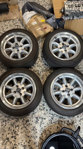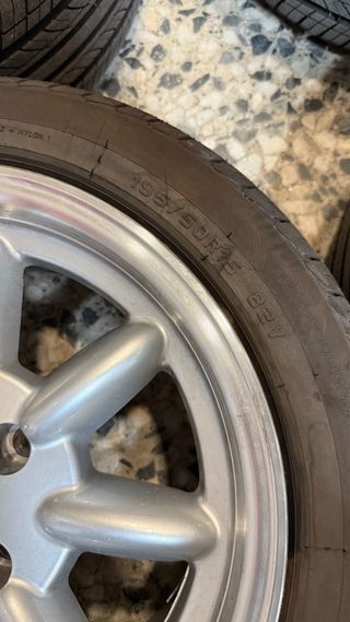 Juego de 4 llantas R15 con neumáticos. - Diámetro: 15 pulgadas. - Patrón de pernos: 4x100. - Diámetro del buje: 65mm. - Desplazamiento (ET): 5.