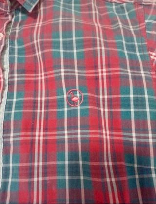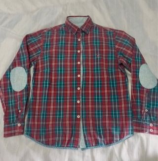 Camisa de cuadros de manga larga. Talla S-M. - Diseño a cuadros en tonos rojos y verdes. - Parches en los codos. - Cuello camisero. - Cierre de botones.