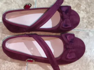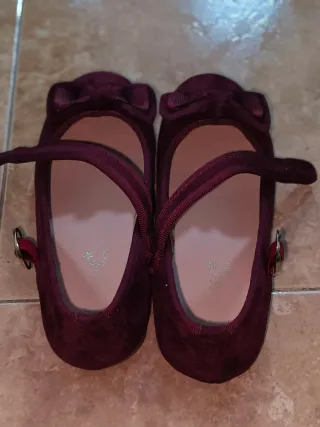 Preciosos zapatos para niña en color borgoña. - Diseño con lazo. - Cierre de tira. - Detalle de hebilla.