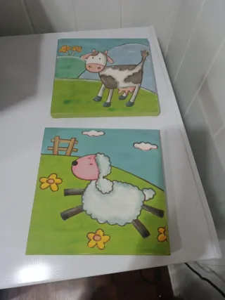 Cuadros infantiles de maderacon vaca y oveja