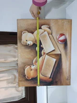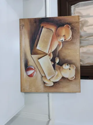 Bonito cuadro pintado a mano con dos osos. - Diseño tierno y colorido. - Ideal para decorar habitaciones infantiles.