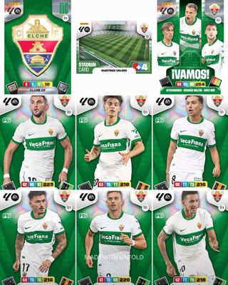 Colección completo Elche 25/26 📨envio ordinario 2€ ✅ 23 Cartas en Total ➡️ 18 Cartas Basicas ➡️ 1 Estadio ➡️ 1 ¡Vamos! ➡️ 1 Protas ➡️ 1 Influencer ➡️ Diamante