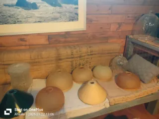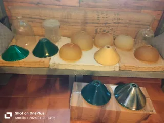Lote de tulipas de cristal italiano, con variedad de formas y acabados. - Dos tulipas verdes cónicas. - Varias tulipas esféricas y cónicas en tonos ámbar y blanco translúcido. - Dos tulipas de cristal transparente, una cónica y otra tipo campana.