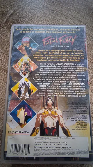 Película de anime Fatal Fury: La Película en formato VHS. - Basada en el videojuego de lucha. - Edición en español. - La caja del VHS tiene muestras de envejecimiento en el plástico (amarillento y arrugas), pero por lo demás está en perfecto estado.