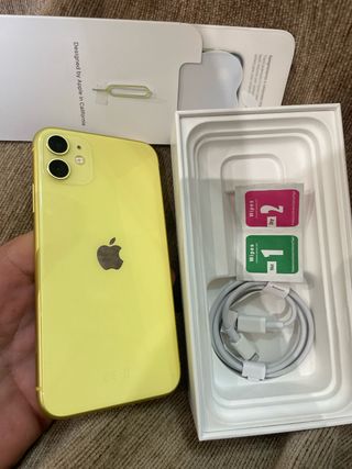 Teléfono móvil iPhone 11 en color amarillo. - Incluye cable de carga. - Incluye herramienta para SIM. - Batería al 100%, cambiada Pantalla nueva