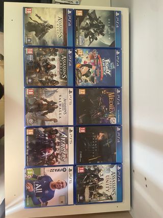Lote de videojuegos para PlayStation 4 y PlayStation 5. - Assassin's Creed: The Ezio Collection (PS4) 15€. - Assassin's Creed: Syndicate (PS4) 10€. - Assassin's Creed: Valhalla (PS5) 12€. - Assassin's Creed: Unity (PS4) 10€. - Destiny (PS4) 10€. - Family Fun Pack (PS4) 10€. - Marvel's Avengers (PS5) 15€. - Death Stranding (PS4) 12€. - FIFA 22 (PS5) 5€. - Medievil ( PS4) 12€.