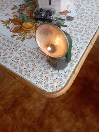 Lámpara de carburo de mesa con un diseño esférico y base cilíndrica. es un modelo raro de sobremesa y para llevar por casa está en muy buen estado años 40 no la he probado pero creo que debe funcionar preferiblemente recogida en mano en el sur de Tenerife si se envía gastos a cargo del comprador 12,5 euros wallapop envíos sólo con Canarias con península no funciona - Material metálico plateado. - Asa lateral. - Mecanismo de encendido visible.