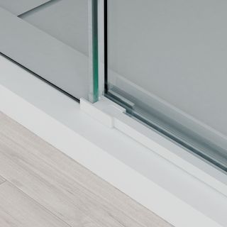 Mampara de ducha moderna y elegante, ideal para tu baño. - Diseño transparente con detalles en blanco. - Fabricada con materiales de alta calidad como cristal y metal.