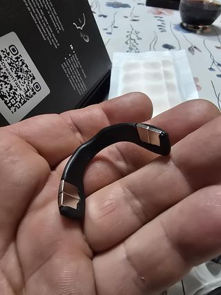 Este artículo es un dispositivo para el puente nasal. - Diseño curvo y ergonómico. - Acabado en color negro. - Incorpora detalles metálicos en los extremos.