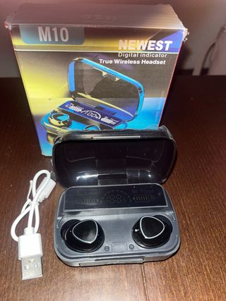 Auriculares inalámbricos M10 con indicador digital. - Diseño True Wireless. - Incluye cable de carga USB.