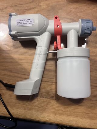 Pistola de pintura eléctrica Tilswall DREAMER ultraligera, ideal para principiantes y bricolaje en casa. Tanque desmontable de 600 ml, 2 boquillas (1,5 y 2,0 mm) y 3 modos de pulverización (horizontal, vertical y circular) para paredes, techos, muebles, vallas o jardín. Control de flujo ajustable para un acabado uniforme y profesional, fácil de montar y limpiar tras cada uso. - Depósito con capacidad máxima de 600 ml. - Boquilla ajustable. - Botón de encendido/apagado. - Mango ergonómico.