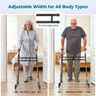 Andador plegable con diseño versátil y práctico. - Estructura de aluminio resistente. - Empuñaduras ergonómicas para mayor comodidad. - Ruedas delanteras para facilitar el desplazamiento. - Altura ajustable en varios niveles.