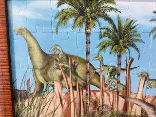 Cuadro Puzzle Dinosaurios con marco marrón