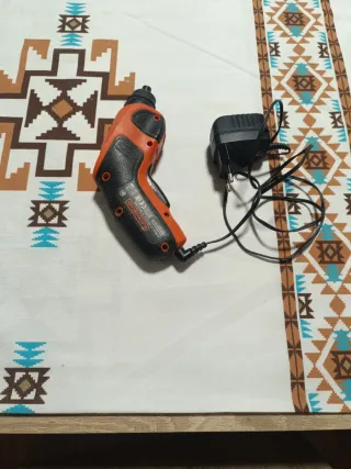 Destornillador eléctrico Black+Decker con cargador. - Color naranja y negro. - Incluye adaptador de corriente.