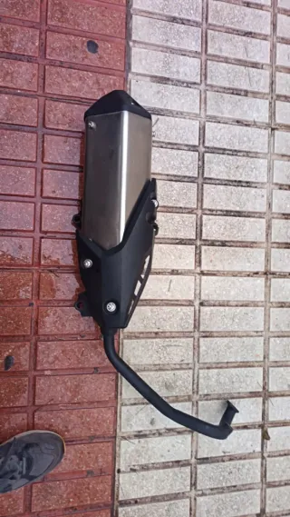 Tubo de escape para moto de 125cc. Pieza nueva. - Diseño moderno y deportivo. - Acabado en negro mate y detalles en metal. - Incluye protector térmico.