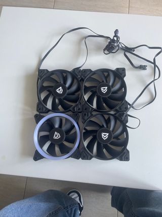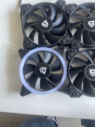 Pack de cuatro ventiladores para PC. - Incluye un ventilador con aro de iluminación RGB. - Diseño en color negro.