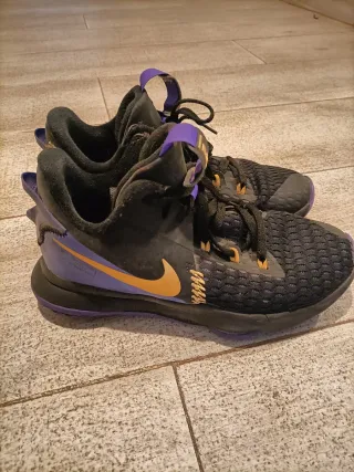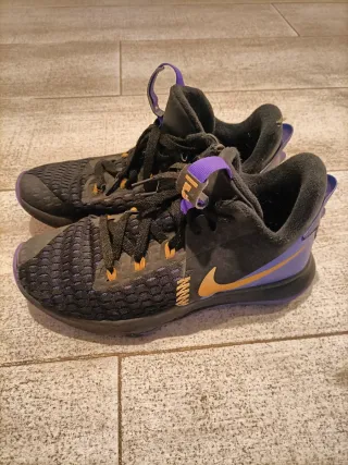Zapatillas deportivas Nike con un diseño moderno. - Combinación de colores negro y lila. - Cierre con cordones. - Detalle de swoosh en color dorado.
