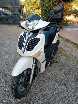 Scooter de 125cc en color blanco. Ideal para moverse por la ciudad con agilidad. - Diseño moderno y deportivo. - Asiento cómodo para dos personas. - Maletero integrado bajo el asiento.