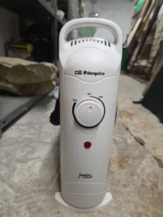 Radiador eléctrico Orbegozo modelo Junior. - Color blanco. - Asa para transporte. - Indicador luminoso.