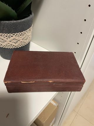 Estuche de madera para juegos de cartas Bridge y Canasta. - Incluye dos barajas de cartas. - Incluye dados con letras K y Q. - Incluye una pequeña cartera de cuero para tirar los dados.
