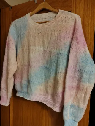 Jersey de punto con un diseño multicolor y un tacto suave. Presenta un patrón de rombos y pequeños calados. - Tejido de punto. - Diseño de rombos. - Acabado con calados.