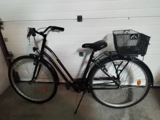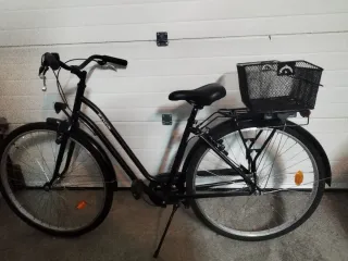 Bicicleta de paseo en color negro, ideal para desplazamientos urbanos. - Cesta delantera. - Guardabarros. - Pata de cabra.