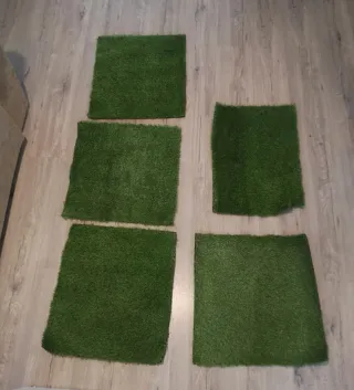 Se venden 5 piezas de césped artificial de color verde. Son perfectas para decorar cualquier espacio. - Ideales para interiores y exteriores. - Fáciles de colocar. - Se encuentran en buen estado. 4. Piezas de 50cm x 50 cm y 1 de 60cm x 40cm se hace envío cualquier duda preguntar