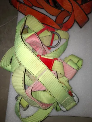 Arneses de seguridad naranjas y verdes