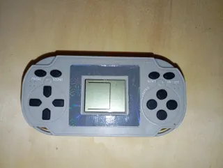 Consola de videojuegos portátil de estilo retro. - Diseño compacto y ligero. - Botones de control direccional y de acción. - Pantalla LCD. - Botones PAUSE, SOUND, RESET y ON/OFF.