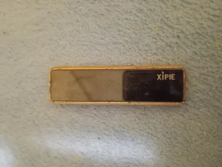 Mechero eléctrico de la marca Xipie con un diseño elegante. - Acabado metálico dorado. - Superficie negra con logo.
