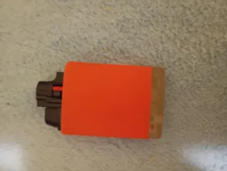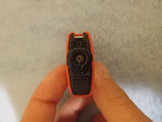 Mechero con diseño antiviento en color naranja. - Cuerpo principal de color naranja. - Conector negro en un extremo.