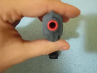Pistola de juguete de color negro con detalles realistas. - Cañón con punta naranja. - Empuñadura ergonómica. Pistola que dispara bolitas de plástico no ace daño