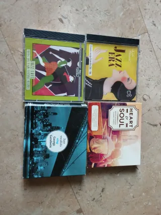 Conjunto de cuatro CDs de música. - Jazz Cafe: 1920s, 30s, 40s Vintage Blends - Jazz Era: Classic songs from the 30s-50s - Jazz Vocalists Sing George Gershwin - Heart & Soul: Retro Sounds & Classic Voices
