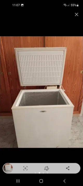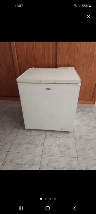 Arcón congelador de color blanco. - Diseño compacto y funcional. - Tapa superior con bisagras.