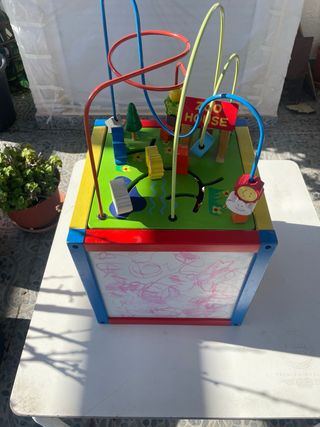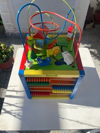 Centro de actividades de madera para niños pequeños, con múltiples juegos. - Incluye laberinto de cuentas. - Figuras de animales de madera. - Ábaco integrado. -Pizarra -PRECIO NEGOCIABLE.