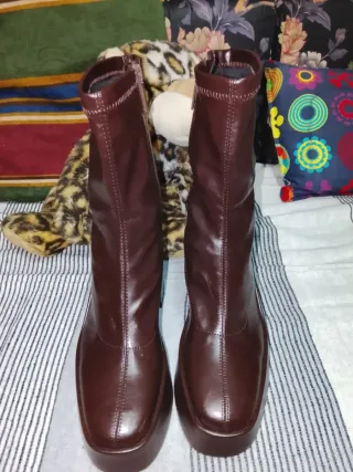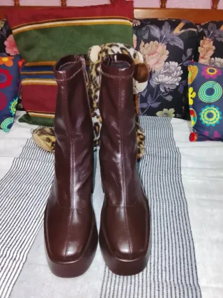 Botas de plataforma altas de la marca Pull&Bear. - Diseño de caña alta. - Cierre de cremallera lateral. - Suela gruesa y cuadrada.