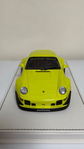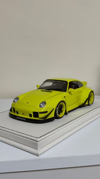 Réplica a escala 1/18 del icónico Porsche RWB. - Modelo detallado. - Color amarillo vibrante. - Caja original