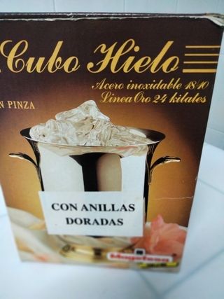 Elegante cubitera de hielo de la marca Magefesa, perfecta para mantener tus bebidas frías. Su diseño combina acabados dorados y plateados. Con pinzas. Linea Oro 24 kilates. También tengo en venta Cubitera para enfriar botellas, dentro de la misma línea de diseño. Puedo hacer un pack con los dos productos a interesados. - Fabricada en acero inoxidable 18/10. - Incluye pinzas para servir el hielo.