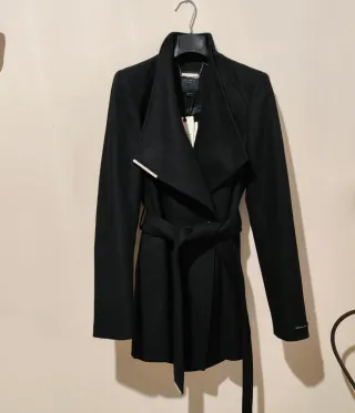 Elegante abrigo midi de Ted Baker en color negro. Nuevo con etiquetas. Talla 2. Material exterior: 70% lana, 25% poliamida, 5% cachemira