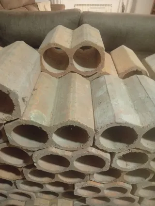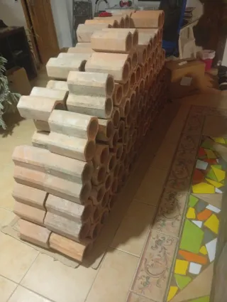 Conjunto de botelleros de cerámica con un diseño rústico. - Fabricados en terracota. - Color beige y marrón.